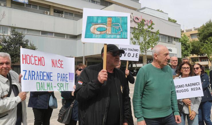 Radnici nekadašnje Dalme okupili su se na trgu ispred te bivše robne kuće u središtu Splita kako bi zatražili da im se napokon isplate njihove plaće u bruto iznosu od 3,6 milijuna eura.